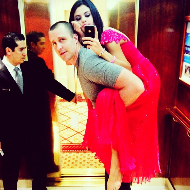 Каждый раз, когда я исполняю Who Says — всегда снимаю обувь (это почти всем не нравится, но это весело) и Брайан несет меня на спине после такого выступления 🙂
