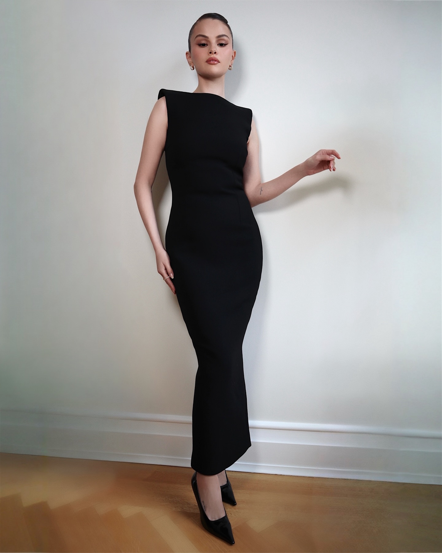Новые потрясающие фото великолепной Селены Гомес, позирующей в черном платье перед посещением мероприятия ‘ABC Disney Upfront Event’, которое прошло этим днем в Нью-Йорке.