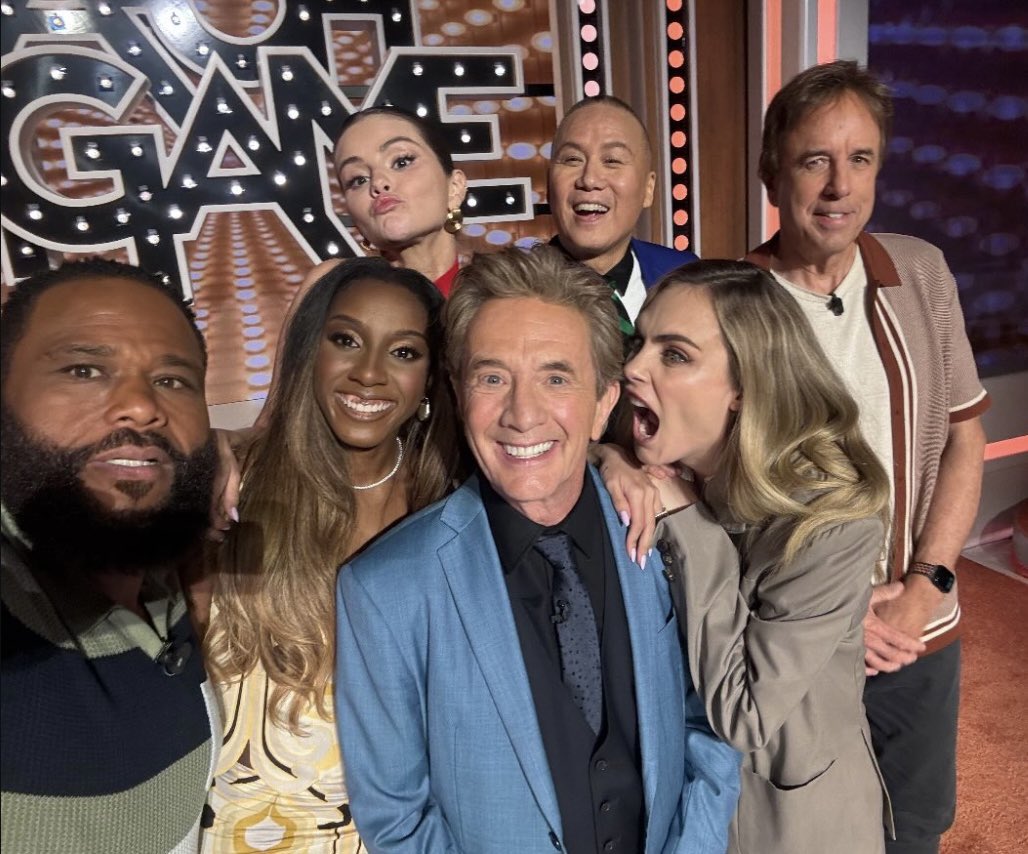 Новые фотографии Селены с Мартином Шортом и Карой Делевинь из-за кулис со съемок игрового шоу «Match Game».