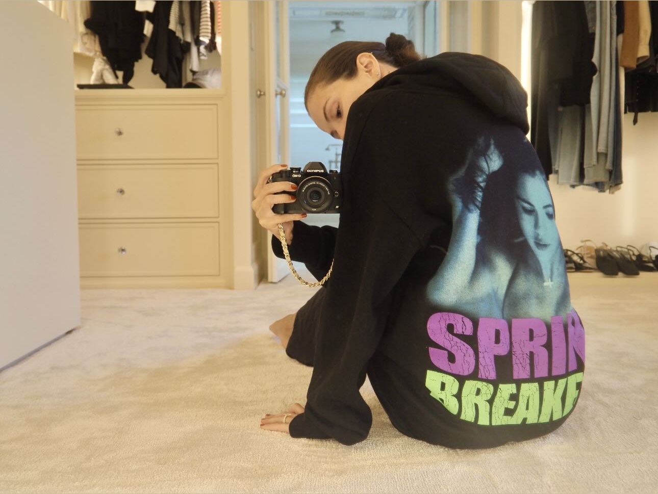 Новое фото Селены, позирующей в новом троубэк мерчандайзе, размещенное в истории ее Инстаграма.