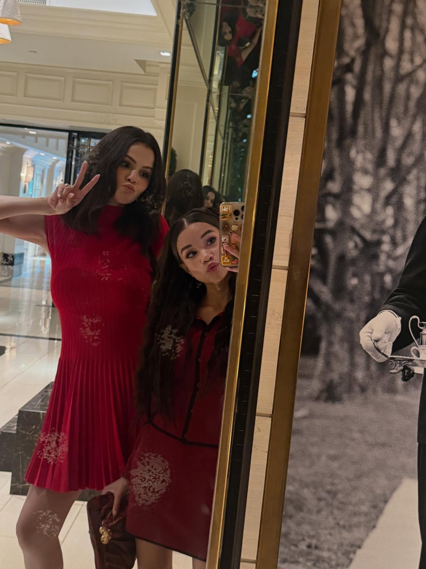 Новое милое селфи Селены вместе с Дженис Лиэнн Браун, сделанное за кулисами пресс-тура сериала «Волшебники за пределами Вейверли Плейс» ранее в 2025 году.