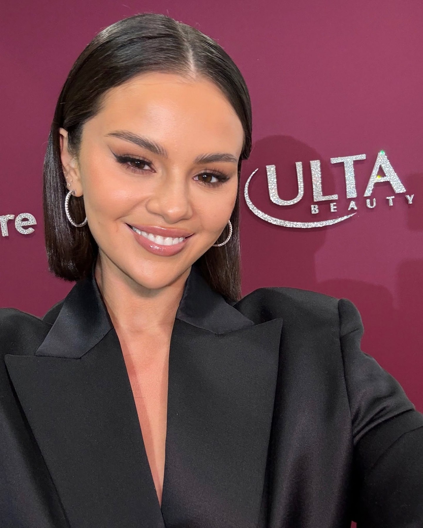 Новое селфи Селены с красной дорожки запуска бренда Rare Beauty в магазинах Ulta Beauty, которое состоялось 1 февраля в Калифорнии.