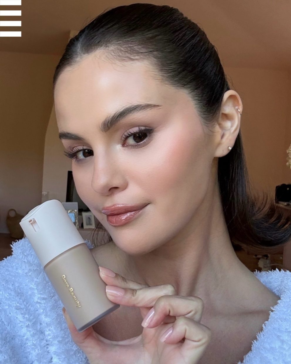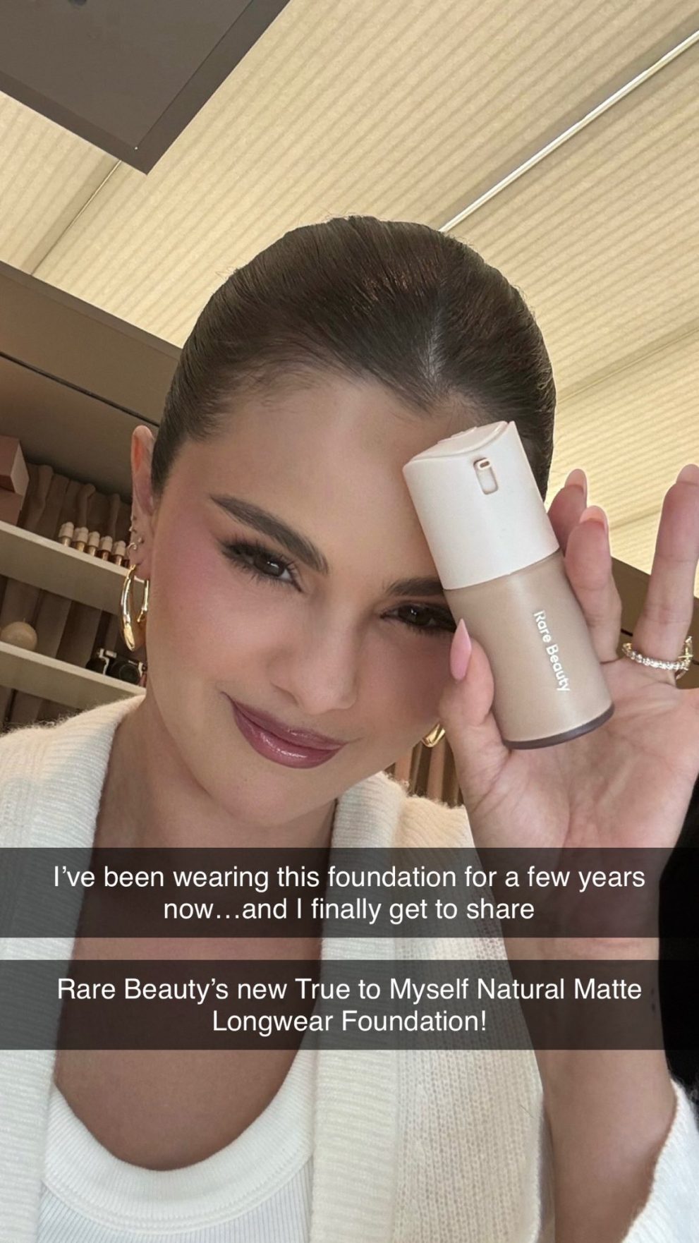 «От моей свадьбы до съемок клипа на песню «Sunset Blvd», от выходов на красные дорожки до самых ленивых дней дома… Я пользовалась моей новой тональной основой от @RareBeauty во всех ситуациях. Она сама подготавливает кожу к нанесению макияжа, фиксируется и с течением дня выглядит только лучше. Я очень долго ждала возможности поделиться ею с вами и БЕЗУМНО рада, что наконец могу это сделать». — Селена